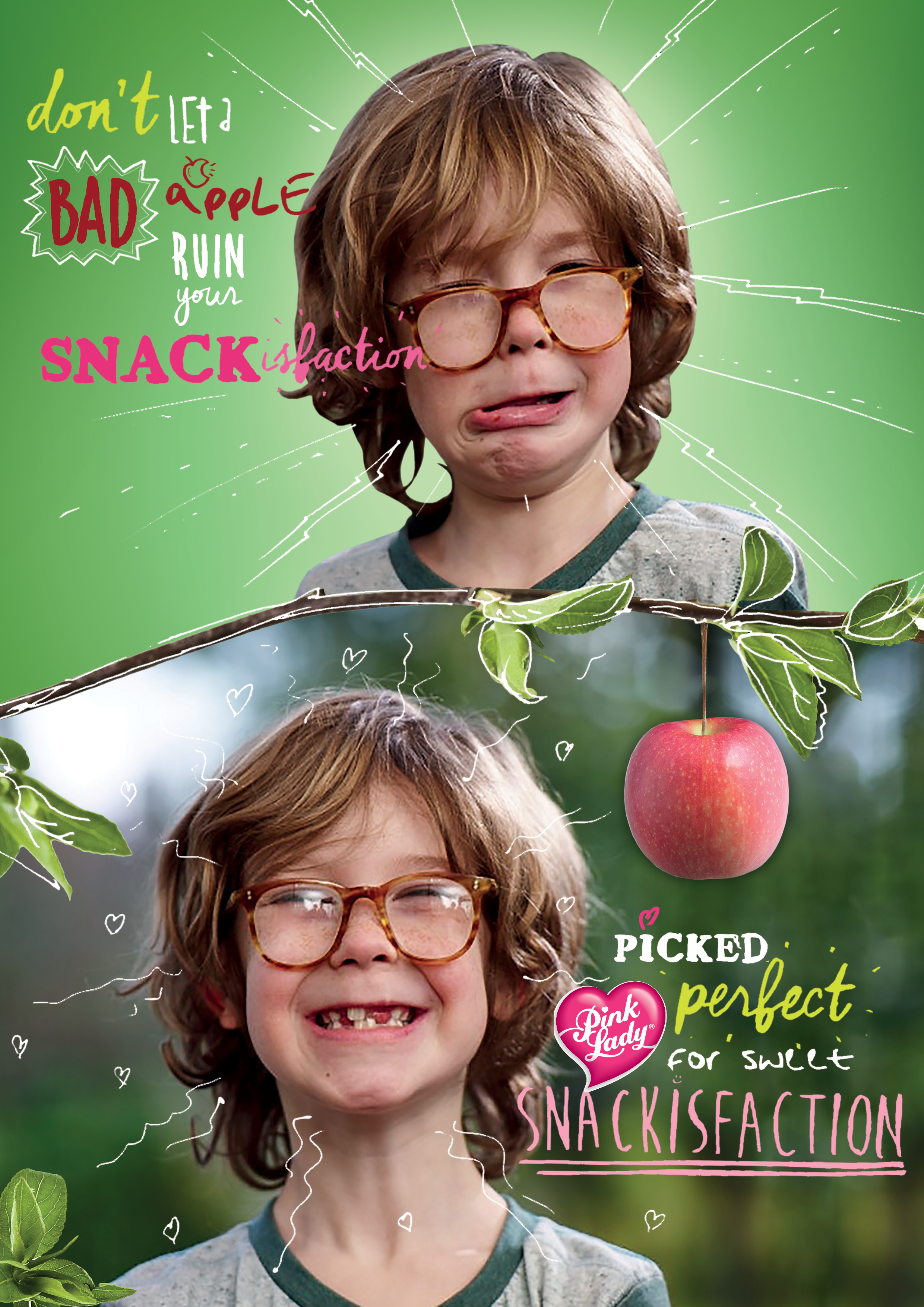 Press ad design for Pink Lady apples.